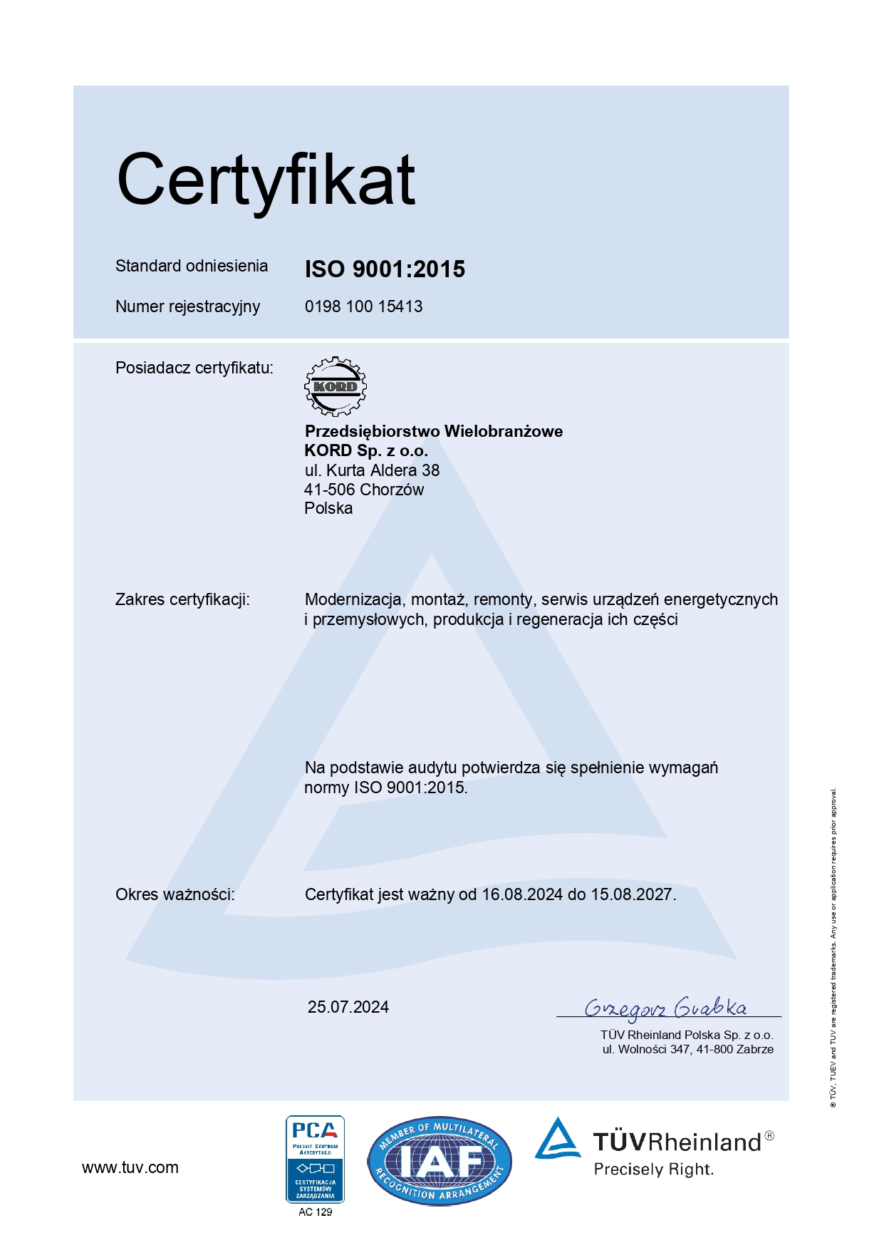 Przedsiębiorstwo Wielobranżowe "KORD" Sp. z o.o. rozpoczęło działalność w 1996 r.
